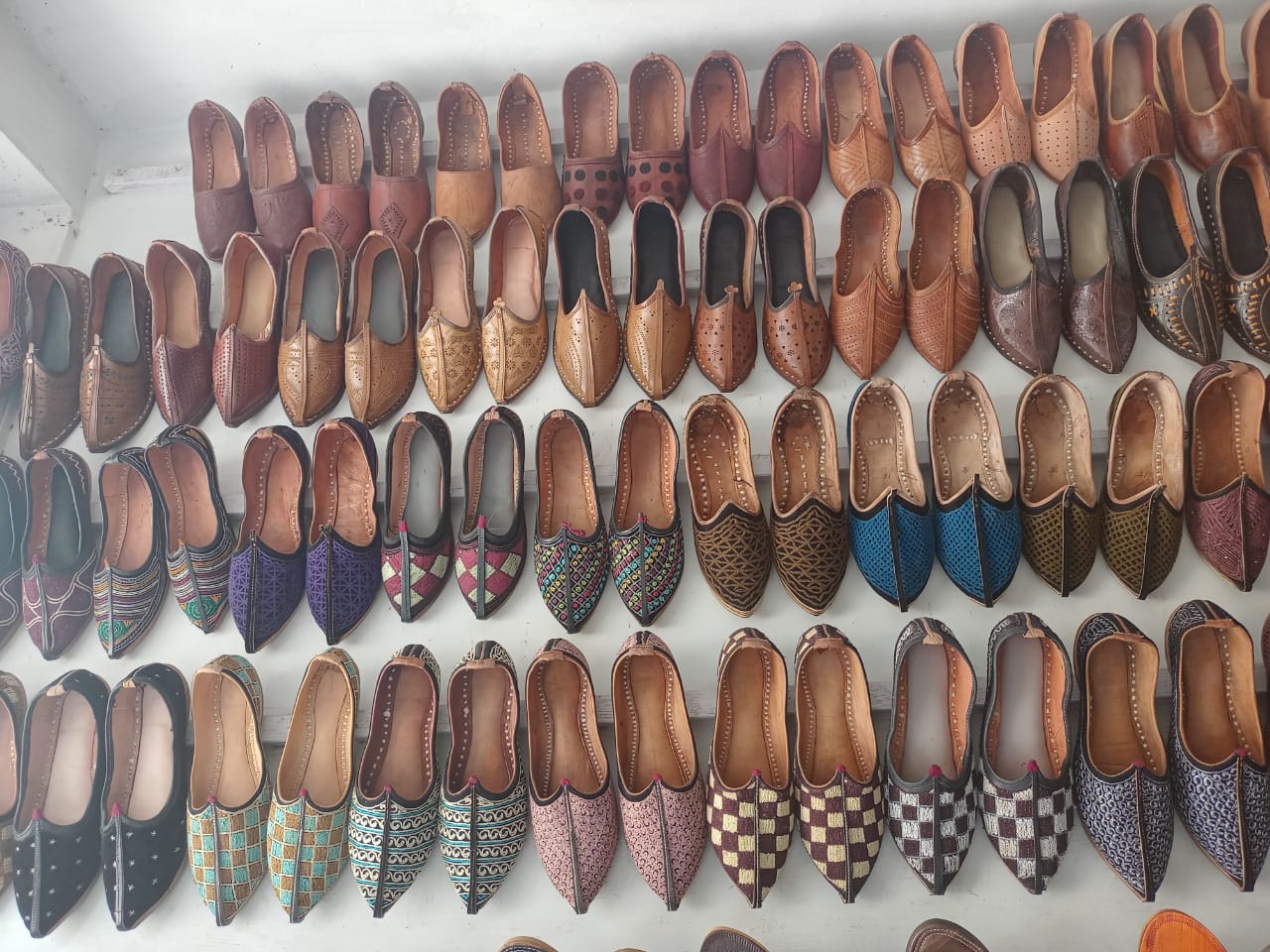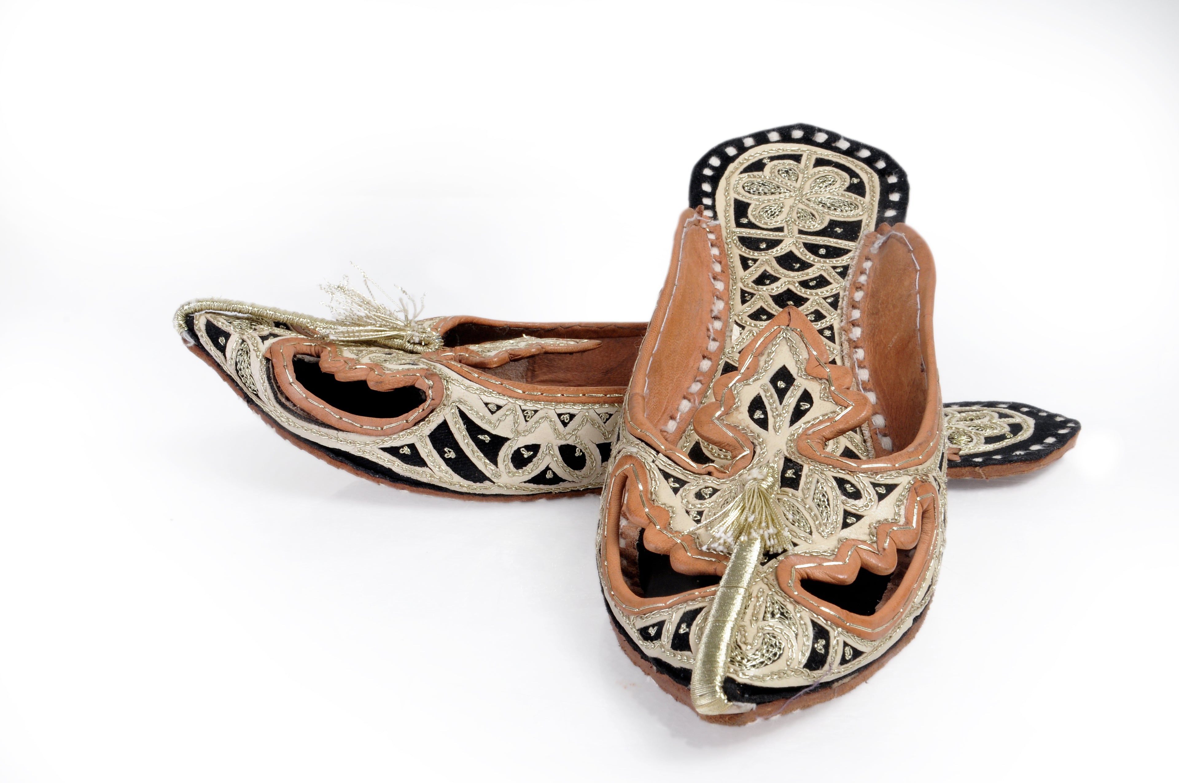 These women juties or jutties or mojaries is a type of footwear common in North India (Rajasthan, Punjab). They are traditionally made up of leather and with extensive embroidery, in real gold and silver thread as inspired by royalty in the subcontinent over 400 years ago. They too feature beautiful embroidery and embellishments based on traditional inspirations.