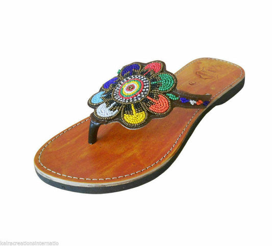 By Kalra Creations Women Slippers Traditional Beaded Leather Mojaries Slip-Ons Indian Jutties Flip-Flops Flat US 8/10Regular price $42.99 USDRegular priceUnit price / per-